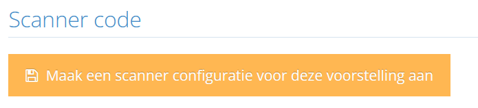 - Als er nog geen code zichtbaar is, klik dan op de gele knop "Maak een scanner configuratie aan voor deze voorstelling"